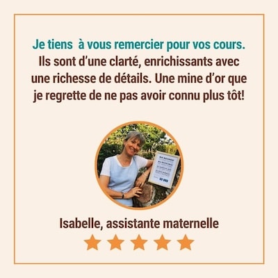La formation est 100% en ligne, ce sont de courtes vidéos qui suivent chaque étape du développement de ton enfant. Tu n'as besoin de regarder que celles qui correspondent ou en es ton enfant au moment où tu es disponible sans pression inutile.